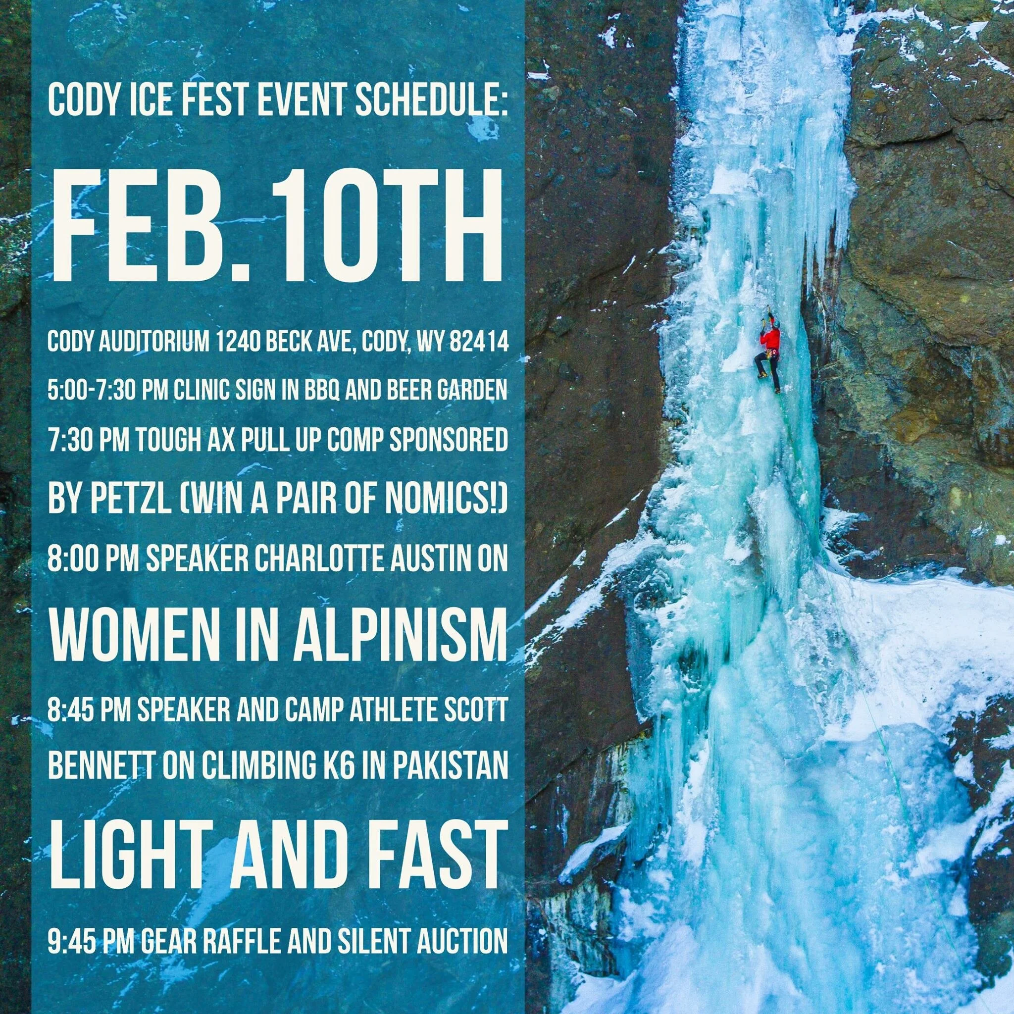 This past February I had the incredible opportunity to speak at the Cody Ice Festival in Cody, Wyoming. It was a wonderful weekend: after I spoke to a jam-packed room on opening night, we watched Scott Bennett share photos from his recent first ascent in Pakistan, drooled over all of next season’s gear, and got totally starstruck as Kitty Calhoun talked about last ascents. The lineup was fantastic: